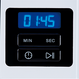 Programowany wyłącznik czasowy z funkcją Auto Stop Ustaw czas mieszania składników, po którym urządzenie AssistnetPRO zatrzyma się automatycznie. Może ono również zliczać czas od chwili rozpoczęcia mieszania, dzięki czemu pozwala kontrolować, ile trwa dana czynność. |