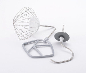 | 3 mieszadła ze stali nierdzewnej - mieszadło K – jego designerski kształt to sekret doskonałych efektów mieszania. Umożliwi przygotowanie ciast np. biszkoptowego, piaskowego lub makaronowego, ciasteczek, cukierków, różnego rodzaju nadzień i farszów, puree oraz wielu innych dań. - trzepaczka – niezrównana w ubijaniu śmietany i przygotowywaniu bezy, sufletów, ciast, sosów czy majonezów. Napowietrza masy, nadając im lekkiej i puszystej konsystencji. Ubija równomiernie, niezależnie od ilości składników. - hak do ciasta – szybko i skutecznie zagniata ciasto, np. na domowy makaron, pizzę, pieczywa czy pączki. |