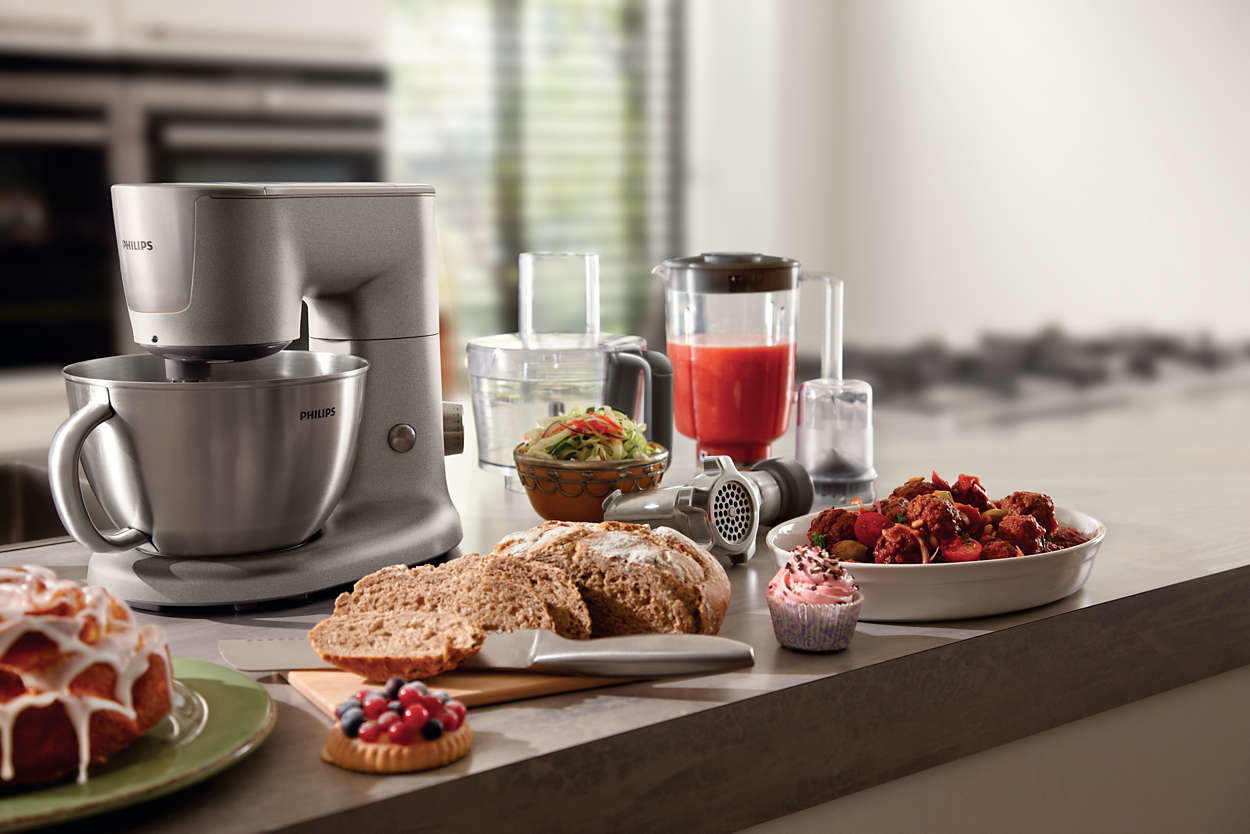 | Mistrzowskie rezultaty — łatwiej niż myślisz! Ciasto, chleb, pizza, ciasteczka, koktajle, zupy i nie tylko -1000 W -7 prędkości i funkcja pulsacji -Urządzenie 6 w 1, łatwy montaż |