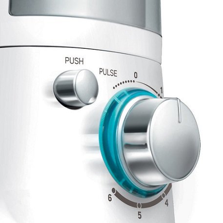 Podświetlony regulator prędkości • 6 prędkości (52, 87, 112, 122, 136 i 172 obr./min.) • Tryb pulsacyjny umożliwiający uruchomienie urządzenia na krótko z maksymalną mocą (172 obr./min.) • Bezpiecznik termiczny zapobiegający przegrzaniu |