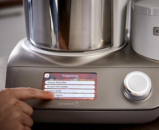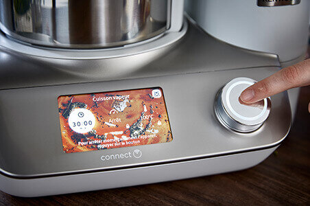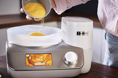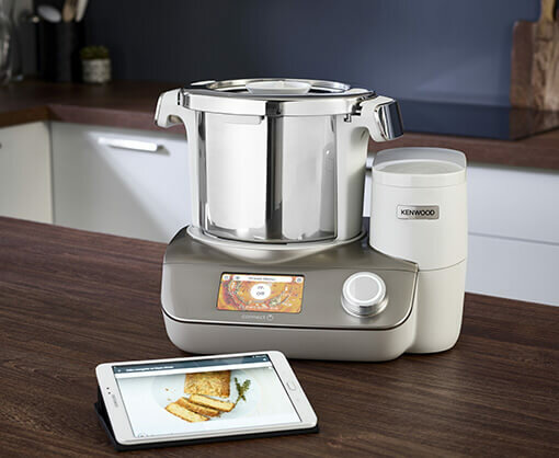 Kolorowy, dotykowy i intuicyjny wyświetlacz o przekątnej 4.3 cala, zapewnia jeszcze lepszą nawigację oraz zwiększa możliwości robota. Pozwala w łatwy sposób sterować pracą urządzenia, monitorować proces gotowania, zapewnia łatwy dostęp do aplikacji Kenwood, automatycznych programów i daje możliwość personalizacji.