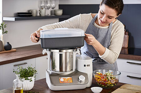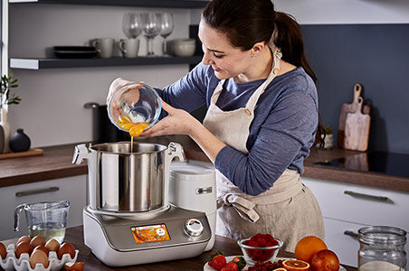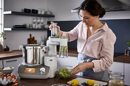 Robota CookEasy+ charakteryzują przemyślane rozwiązania technologiczne, piękna forma i wielofunkcyjność, połączone w jednym urządzeniu. Z jego pomocą możesz: ważyć składniki, siekać, kroić, ścierać, ugniatać, ubijać, mieszać oraz gotować tradycyjnie, na parze i w wolnowarze oraz smażyć, tworząc rozmaite przystawki, przekąski, napoje, zupy, dania główne i desery.