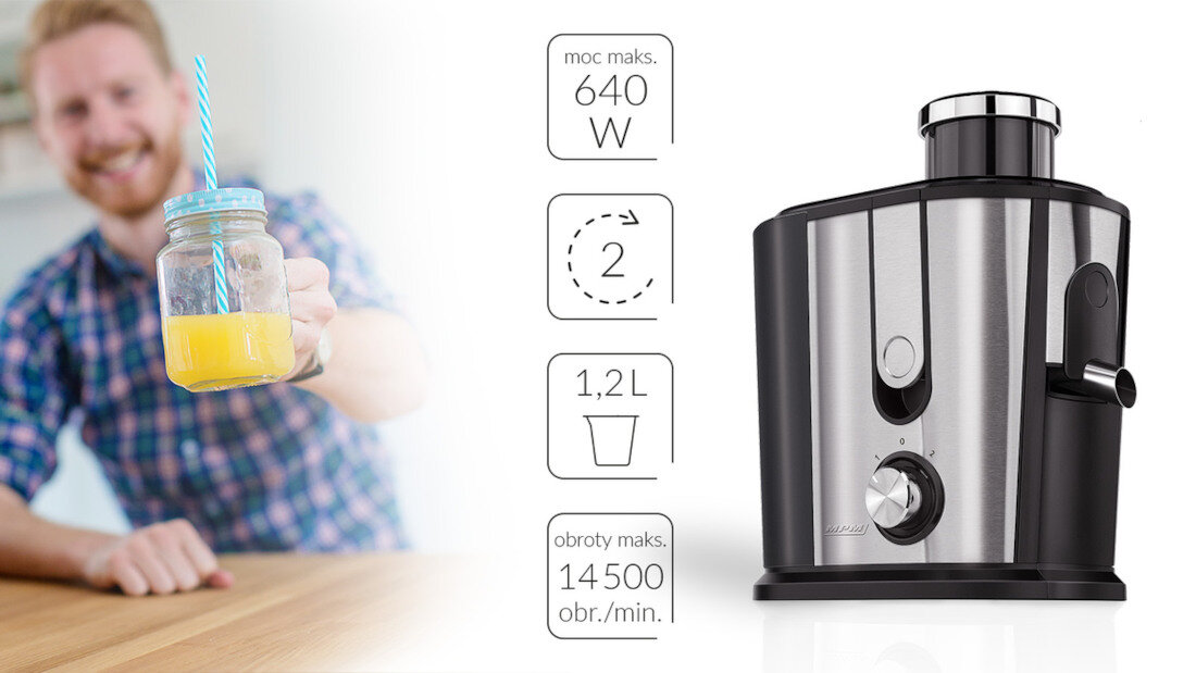 Wyposażenie: | Filtr, Instrukcja obsługi w języku polskim, Karta gwarancyjna, Pojemnik na sok |