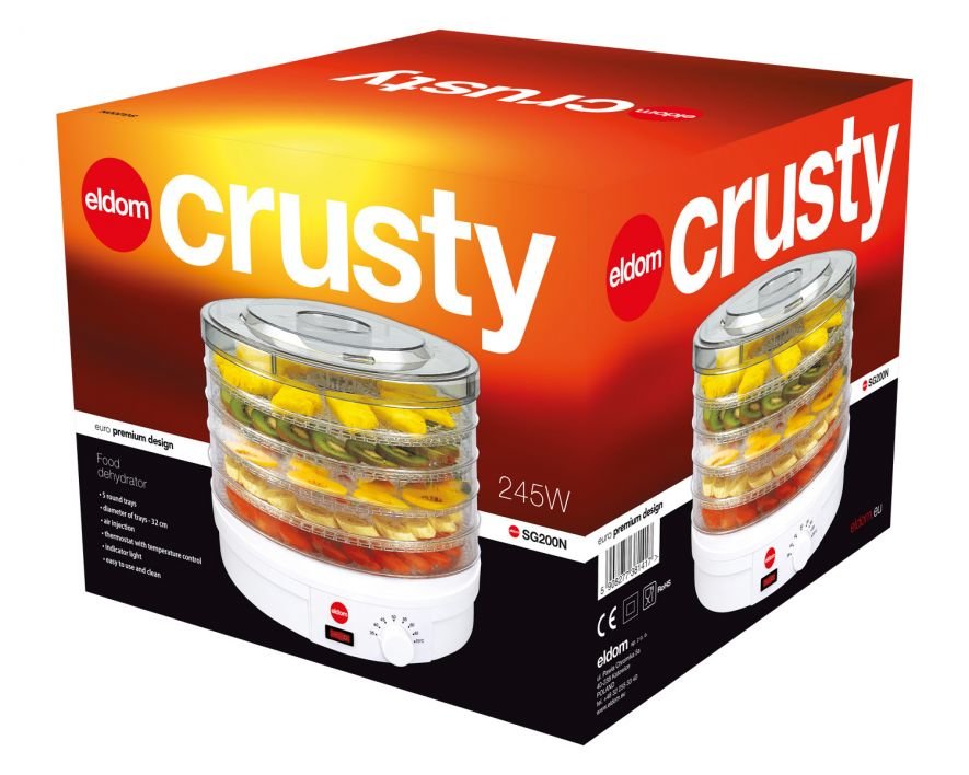 Jak w prosty i naturalny sposób przedłużyć trwałość ulubionych produktów? Odpowiedź brzmi: wysuszyć! Umożliwia to suszarka do żywności SG200N CRUSTY ELDOM, przeznaczona do suszenia warzyw, owoców, grzybów, a także mięsa, ziół czy makaronu.