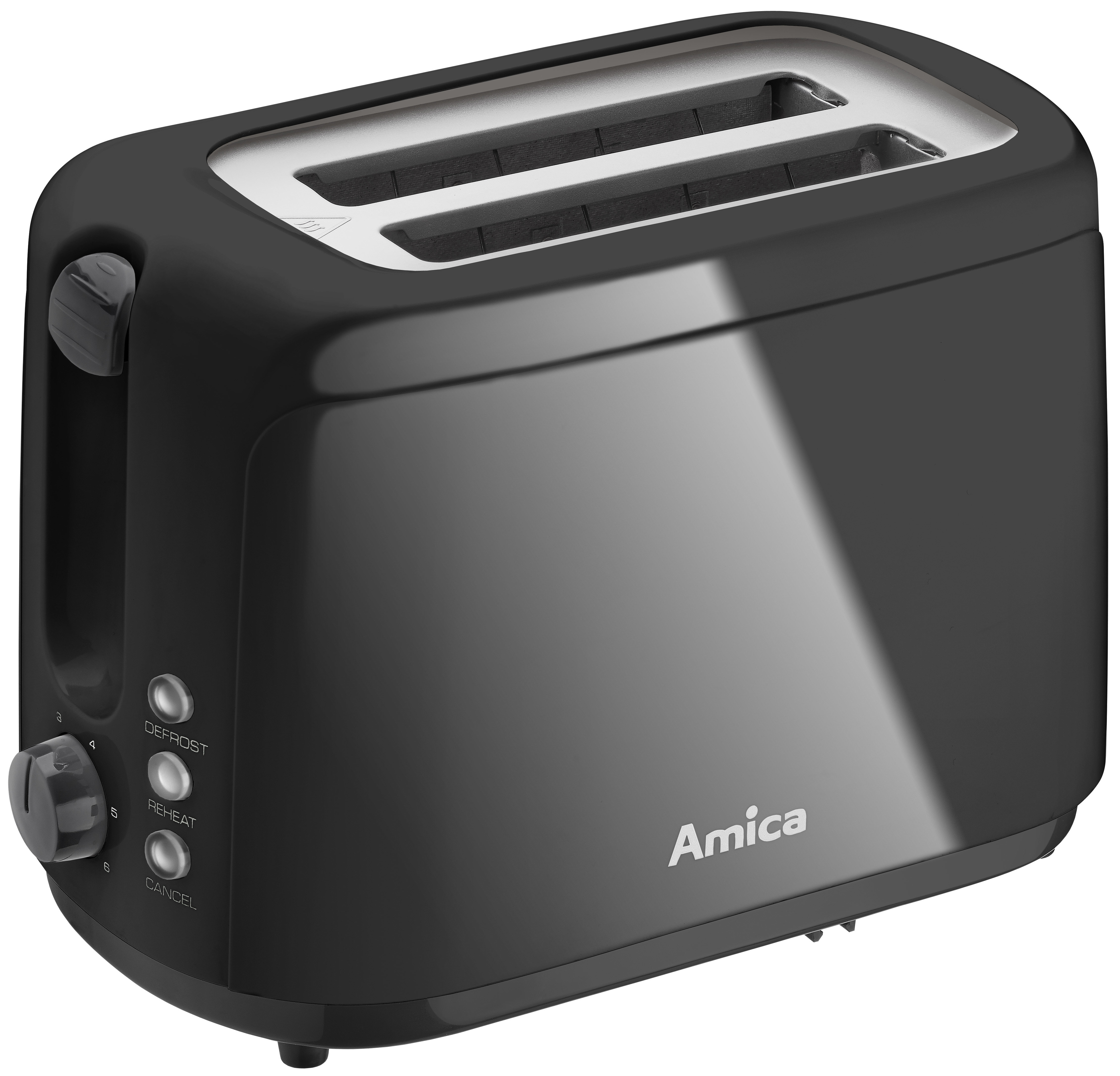 Toster AMICA o mocy 750 W z 6 poziomami opiekania, z podnośnikiem pieczywa zintegrowanym w korpusie. |