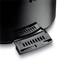 Czyszczenie tostera jest równie proste jak jego obsługa. Wystarczy wysunąć tackę na okruchy, opróżnić ją i umieścić na swoim miejscu. |
