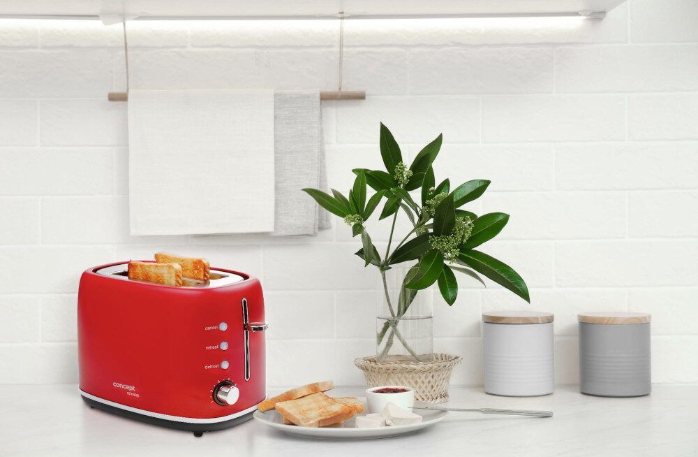 Toster CONCEPT po upłynięciu czasu opiekania wysuwa tosty, a następnie automatycznie się wyłącza. Dzięki temu zapobiega ich przypaleniu i zapewnia bezpieczeństwo dla użytkowników.