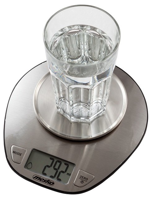 Dodatkowo waga ma funkcję tarowania oraz obliczania objętości wody i mleka, jak również ręczne lub automatyczne zerowanie i wyłączanie.
