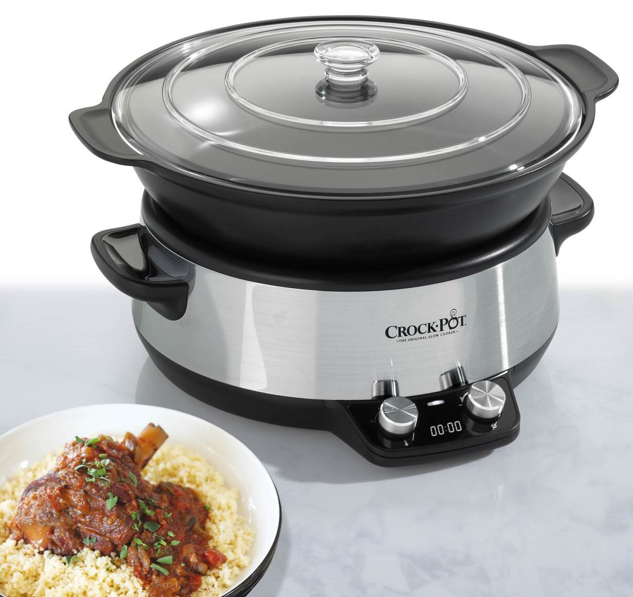 * Porównanie wolnowaru Crock-Pot® 220W włączonego przez 8h do tradycyjnego piekarnika 2200 W - 140oC, 2h 15 min gotowania wołowiny w naczyniu żaroodpornym.