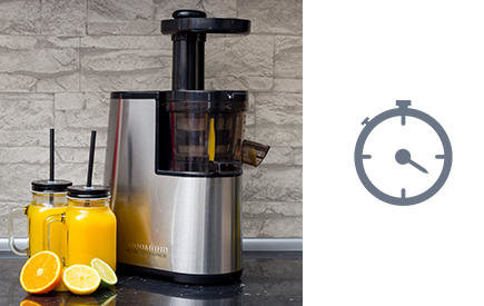 Powolne obroty sprawiają, że sok nie utlenia się, dzięki czemu na jego powierzchni nie gromadzi się piana charakterystyczna dla soku z sokowirówek.