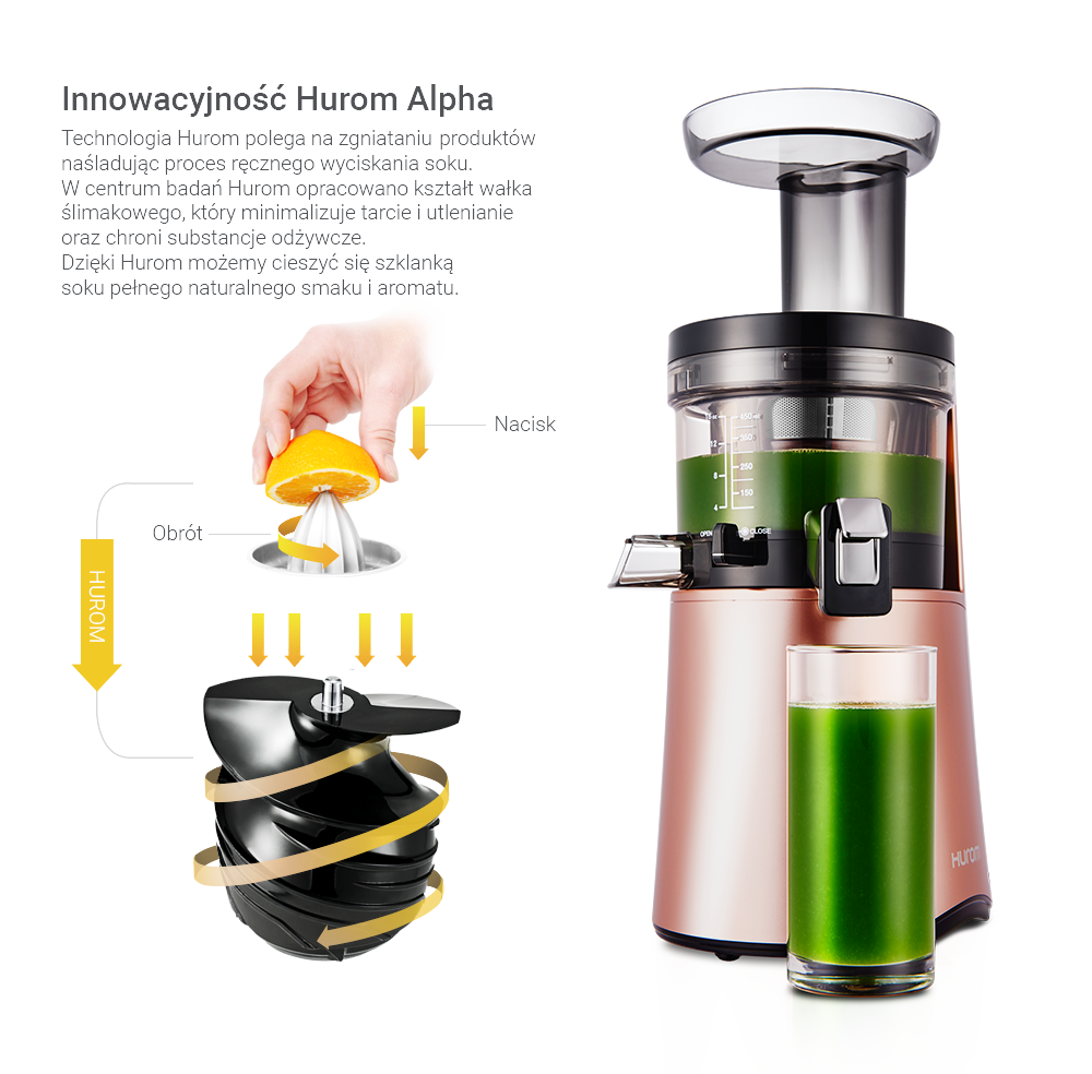Wyciskarka wolnoobrotowa HUROM Alpha H-AA-LBE17 Różowe złoto