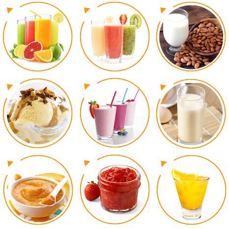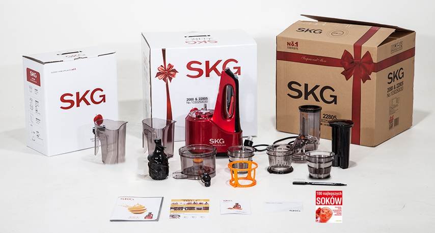 | Co przyrządzimy w SKG 2088? W wyciskarce możemy zrobić soki, smoothie, lody, mleko sojowe oraz orzechowe, musy, przeciery, shake oraz drinki. |