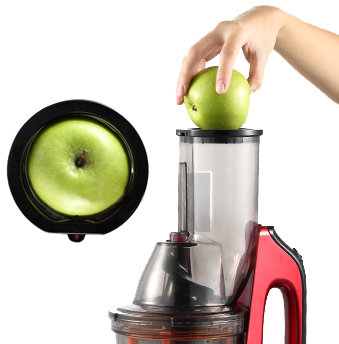 Duży otwór wrzutowy o średnicy 75mm Pozwala na wrzucanie warzyw i owoców w całości bez potrzeby krojenia na mniejsze cząstki. |