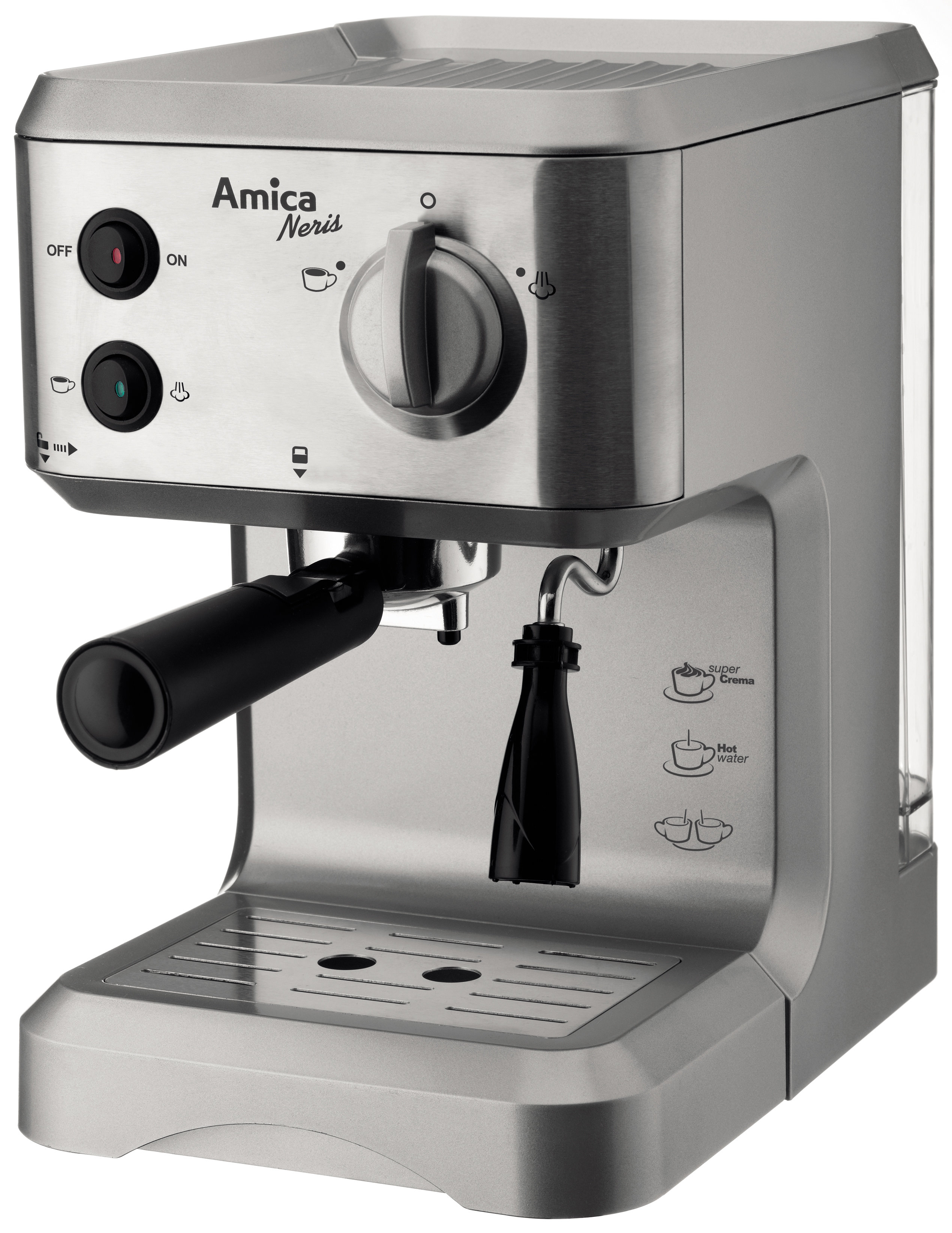 Ekspres ciśnieniowy CD 3011 Neris marki Amica o ciśnieniu pompki 15 bar, mocy 1050W i pojemności 1.25l sterowany manualnie. Model w kolorze srebrnym z systemem Super Crema, funkcją podgrzewania filiżanek, spieniania mleka oraz funkcją gorącej wody. Umożliwia jednoczesne napełnianie 2 filiżanek. W zestawie posiada sitko na jedną oraz dwie filiżanki, miarkę i ubijak kawy. Kabel sieciowy o długości 0.75 m. |