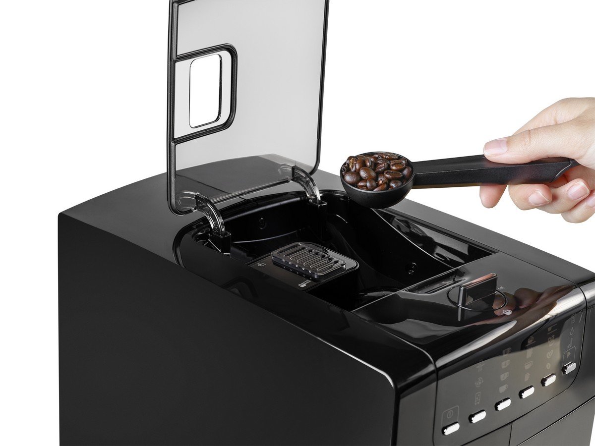| Funkcje: | Regulacja ilości zaparzanej kawy, Regulacja mocy kawy, Wbudowany młynek, Spienianie mleka, Wskaźnik poziomu wody, Filtr |