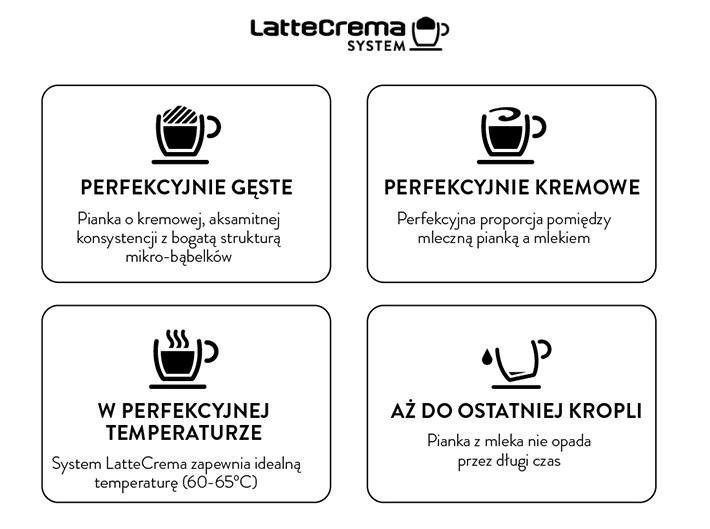 AŻ DO OSTATNIEJ KROPLI > Dzięki systemowi LatteCrema pianka z mleka nie opada przez długi czas, więc przyjemność trwa aż do ostatniej kropli.