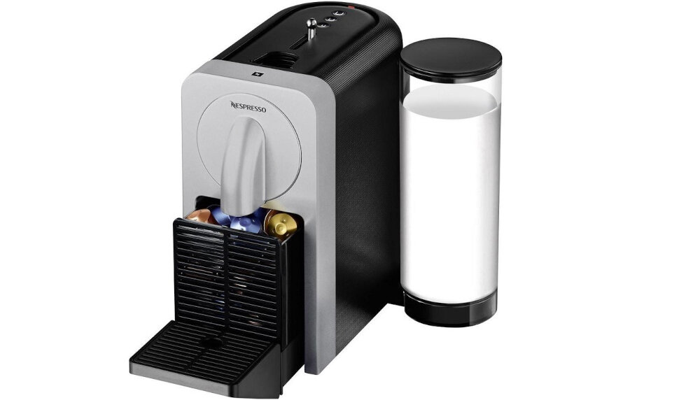 Wysokociśnieniowy ekspres prodigio na kapsłuki nespresso o mocy 1150W i ciśnieniu parzenia kawy 19 barów, w kolorze srebrno-czarnym, produkcji włoskiej firmy DeLonghi. Rozgrzewa się już w ciągu 25 sekund od uruchomienia.