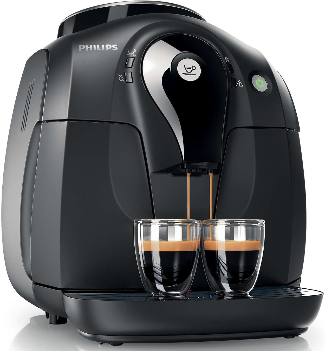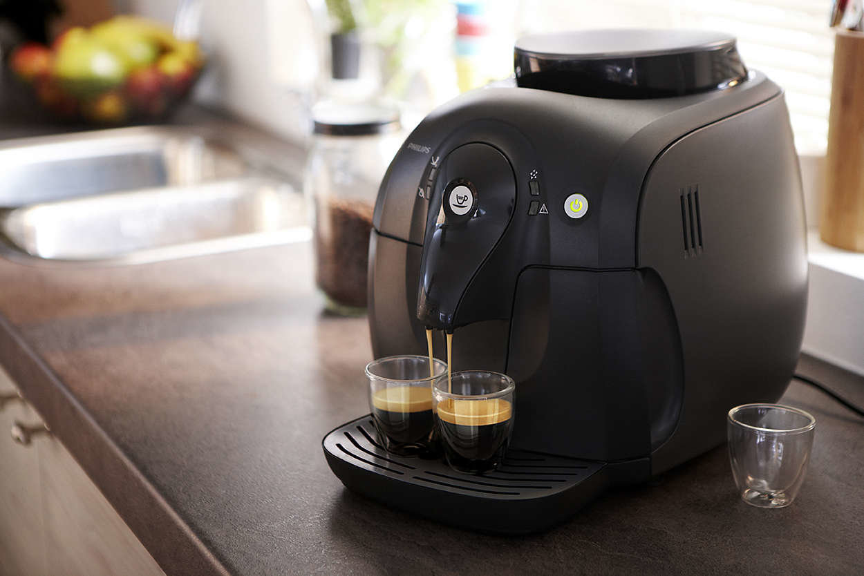 Espresso ze świeżo zmielonych ziaren kawy za dotknięciem przycisku Jeśli naciśniesz jeden przycisk i poczekasz kilka sekund, otrzymasz filiżankę (lub dwie) doskonale zaparzonego espresso przygotowanego ze świeżo zmielonych ziaren kawy. |