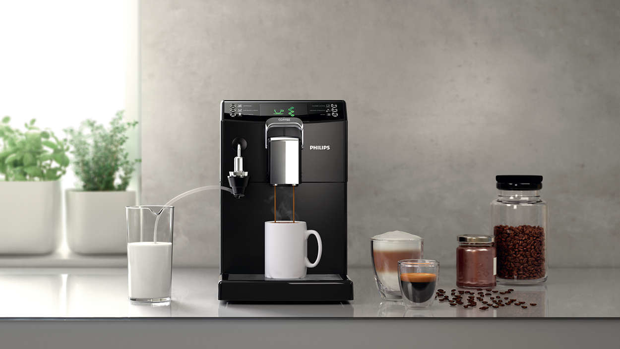 | Gęsta pianka za jednym dotknięciem dzięki automatycznemu spieniaczowi do mleka Przygotowanie aksamitnego cappuccino jest proste dzięki automatycznemu spieniaczowi do mleka. Spieniacz do mleka, który bariści nazywają również „cappuccinatore”, pobiera mleko bezpośrednio z kartonu lub dzbanka, automatycznie je spienia i nalewa prosto do filiżanki, co gwarantuje płynny przepływ mleka bez rozpryskiwania. |