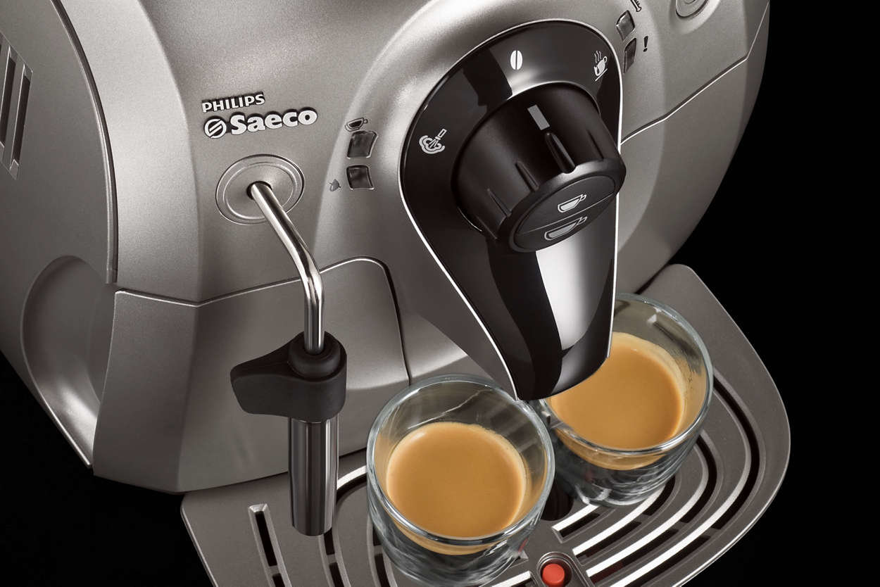 Czysty ekspres dzięki automatycznemu czyszczeniu obiegu Ekspres został zaprojektowany przez firmę Saeco w taki sposób, aby obieg kawy był automatycznie czyszczony po włączeniu lub wyłączeniu urządzenia. Zapewnia to doskonały, świeży smak każdej filiżanki kawy. |