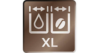 | Specjalna konstrukcja maksymalizuje pojemność w zwartej obudowie Przygotuj więcej kaw bez konieczności uzupełniania składników, dzięki powiększonym pojemnikom na ziarna, wodę i odpady w kompaktowym urządzeniu. Ten inteligentny, w pełni automatyczny ekspres zapewnia maksymalną wygodę i najlepszą wydajność dzięki powiększonym pojemnościom zbiornika wody oraz pojemników na ziarna i odpady. |