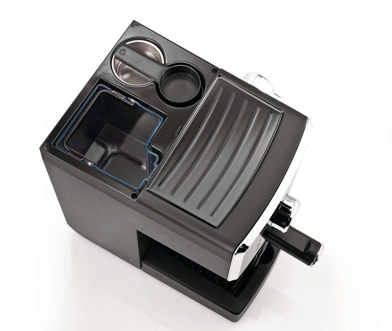 | Ergonomiczna obsługa na co dzień Trzeba uzupełnić kawę mieloną lub wodę albo opróżnić filtr lub tackę ociekową – wszędzie masz łatwy,bezpośredni dostęp. |