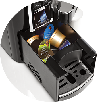 Ekspres ciśnieniowy Cafissimo Latte posiada zintegrowany pojemnik, mogący pomieścić nawet 10 kapsułek. To się nazywa czysta przyjemność użytkowania!