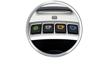 Intuicyjna obsługa dzięki interfejsowi użytkownika opartemu na kolorach Kolor podświetlenia przycisków przypisanych do napojów wskazuje typ kapsułki potrzebnej do przygotowania każdego z napojów. Biały to espresso, żółty to caffè crema, a niebieski to kawa przelewowa. Dzięki temu ekspres jest niezawodny i łatwy w obsłudze. |