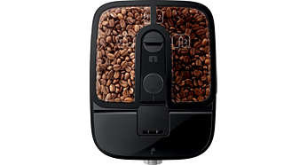 | Podwójny pojemnik na świeże ziarna zapewnia większą różnorodność W podwójnym pojemniku można przechowywać dwa rodzaje świeżych ziaren. Dzięki temu można cieszyć się większą różnorodnością. |