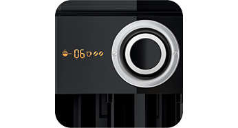 | Wyświetlacz LCD umożliwia łatwy wybór ustawień kawy Dzięki wyświetlaczowi LCD i wyjątkowemu pokrętłu regulacji parzenia można z łatwością wybierać preferowane ustawienia kawy, np. liczbę filiżanek, moc i czas parzenia. |