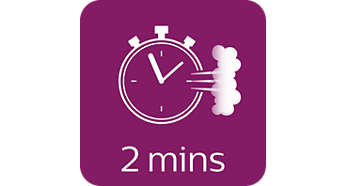 Gotowość do użytku w 2 minuty, nieograniczone uzupełnianie Para jest gotowa do użytku w 2 minuty; wodę można uzupełniać w dowolnym momencie podczas prasowania. |