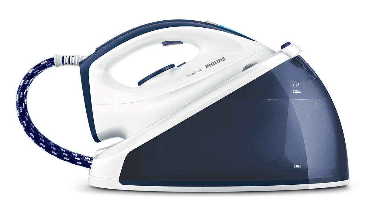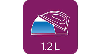 | Zbiornik wody 1,2 l i napełnianie w dowolnej chwili podczas prasowania Żelazko z generatorem pary SpeedCare jest wyposażone w zbiornik wody o pojemności 1,2 l, co pozwala na prasowanie przez ponad godzinę i zmniejszenie częstotliwości uzupełniania wody na potrzeby dłuższych sesji prasowania. Wodę w zbiorniku można uzupełniać także podczas prasowania — nie trzeba czekać 2 godzin, aż urządzenie ostygnie. |