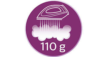 Ciągły strumień pary do 110 g/min Im więcej pary, tym szybsze jest prasowanie. Wyjątkowa technologia zastosowana w żelazku z generatorem pary firmy Philips wytwarza parę o dużej mocy, która ułatwia, wspomaga i przyspiesza prasowanie. |