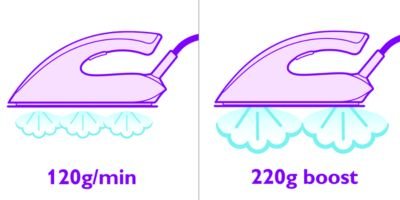 | 100-procentowa wydajność ze wszystkimi typami tkanin, nie ma szybszego żelazka 100% efektywności na tkaninach trudnych do prasowania — żaden generator pary nie jest szybszy w prasowaniu |