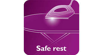 Żelazko można zabezpieczyć, blokując je na podstawie Żelazko z generatorem pary jest wyposażone w zabezpieczenie na czas przenoszenia. Można bezpiecznie zablokować żelazko na podstawie, aby zmniejszyć ryzyko dotknięcia gorącej stopy. Można też bez problemu przenosić generator pary. |