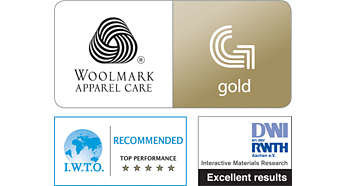| Testowane i zatwierdzone przez niezależnych ekspertów w dziedzinie tkanin To żelazko zapewnia doskonałą jakość prasowania — potwierdziły to testy przeprowadzone przez niezależne instytuty z branży tekstylnej, takie jak DWI, IWTO i Woolmark. Program Woolmark Apparel Care ma zadanie pomóc klientom w zidentyfikowaniu wysokiej jakości produktów do pielęgnacji ubrań, które firma Woolmark zatwierdziła do stosowania na odzieży wełnianej. Do tej pory tylko firma Philips oferująca oryginalną technologię OptimalTemp otrzymała od firmy Woolmark certyfikat Gold. Można mieć pewność, że produkty do pielęgnacji odzieży zatwierdzone przez firmę Woolmark zapewnią wełnianym tkaninom idealną ochronę. |