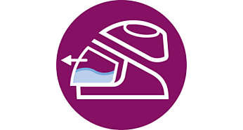 | Silny strumień pary zapewniający skuteczne usuwanie zagnieceń Zyskaj możliwość superszybkiego prasowania dzięki rewolucyjnej technologii. Silny, ciągły strumień pary pozwala wygładzić nawet uporczywe zagniecenia oraz łatwo i szybko wyprasować grubsze tkaniny. Oprócz tego można też skorzystać z dodatkowego silnego uderzenia pary, które przydaje się podczas prasowania w pionie lub w przypadku najbardziej uporczywych zagnieceń. |