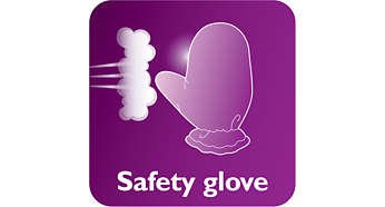 Rękawica zapewniająca dodatkową ochronę podczas użytkowania W zestawie znajduje się rękawica chroniąca dłoń podczas prasowania parowego. |