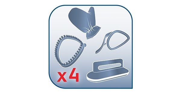 | 4 rodzaje akcesoriów -szczotka do grubych tkanin -szczotka do ubrań -rękawica -akcesorium do kantów |