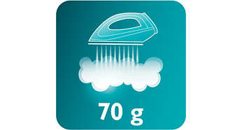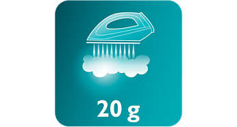 Ciągły strumień pary do 20 g/min ułatwia rozprasowywanie zagnieceń. |