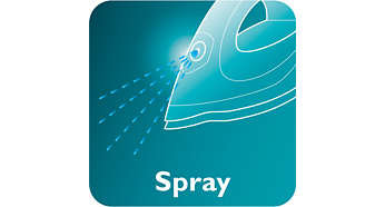 Spryskiwacz wytwarza delikatną mgiełkę wody, która równomiernie zwilża tkaninę, ułatwiając rozprasowanie zagnieceń. |