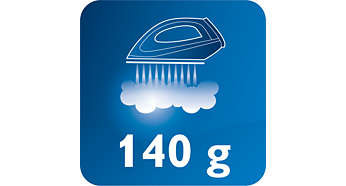 uderzenie pary (140 g) łatwo rozprasowuje najbardziej oporne zagniecenia Funkcji silnego uderzenia pary można używać do prasowania w pionie i usuwania uporczywych zagnieceń. . |