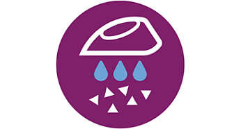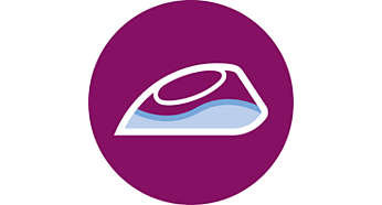 funkcji usuwania kamienia zapewnia długotrwały strumień pary Zbiornik tego żelazka można napełniać zwykłą wodą z kranu. Wbudowana funkcja czyszcząca Calc-Clean ułatwia usuwanie kamienia z żelazka i gwarantuje najwyższą wydajność. |