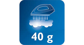 | Strumień pary do 40 g/min ułatwia rozprasowywanie zagnieceń Ciągły strumień pary do 40 g/min zapewnia doskonałą ilość pary pozwalającą skutecznie rozprasować wszystkie zagniecenia. |