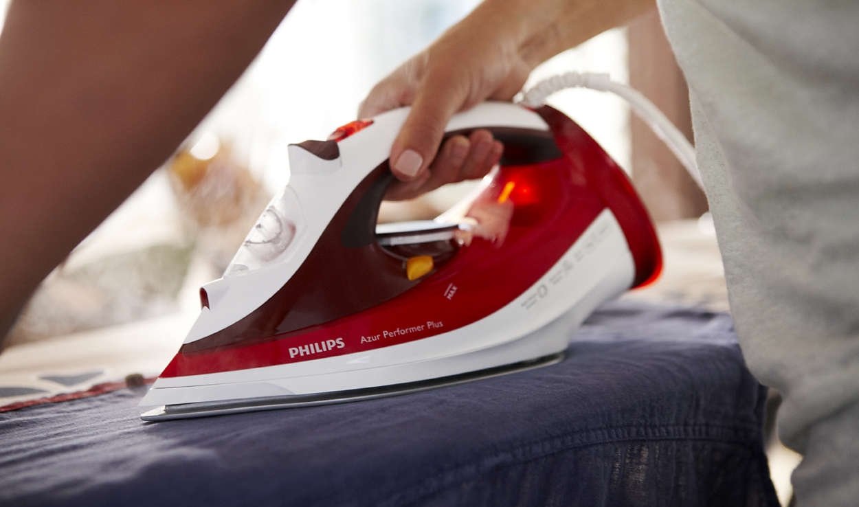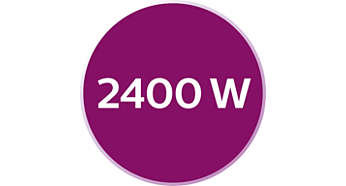 Moc 2400 W zapewniająca szybkie nagrzewanie się Dzięki mocy 2400 W żelazko parowe Azur Performer Plus szybko się nagrzewa i oferuje dużą wydajność, aby zapewnić doskonałe efekty prasowania. |
