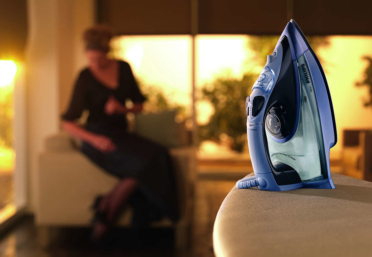 Lekkość urządzenia pozwala na łatwość manewrowania Lekkie żelazko o optymalnej wadze 1,6 kg ułatwiającej ciągłe przekładanie go na deskę do prasowania i z powrotem na podstawę. |