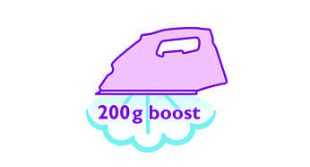 Strumień pary do 50 g/min ułatwia rozprasowywanie zagnieceń Ciągły strumień pary do 50 g/min zapewnia optymalną ilość pary pozwalającą skutecznie rozprasować wszystkie zagniecenia. |