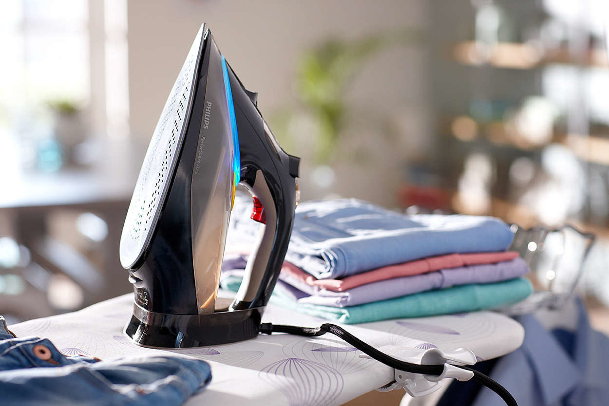 | *Według testów przeprowadzonych z użyciem żelazek parowych Philips *W porównaniu z innymi żelazkami do prasowania na sucho firmy Philips |