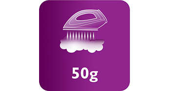 Strumień pary do 50 g/min ułatwia rozprasowywanie zagnieceń Ciągły strumień pary do 50 g/min zapewnia optymalną ilość pary pozwalającą skutecznie rozprasować wszystkie zagniecenia. |