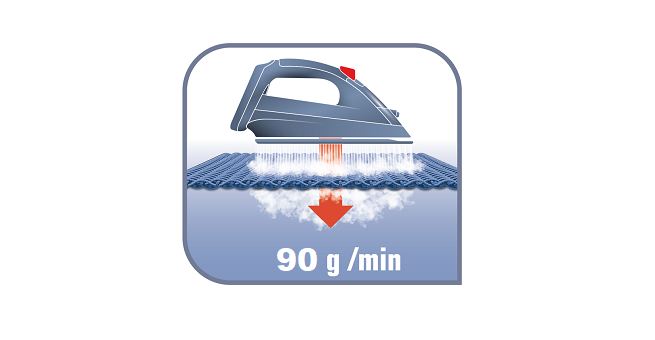 Osiągnij dużą wydajność i szybkość prasowania żelazkiem Tefal, dzięki wytwarzaniu dużej ilości pary. Para wnikając w tkaninę rozluźnia jej włókna, co ułatwia rozprasowywanie zagnieceń.